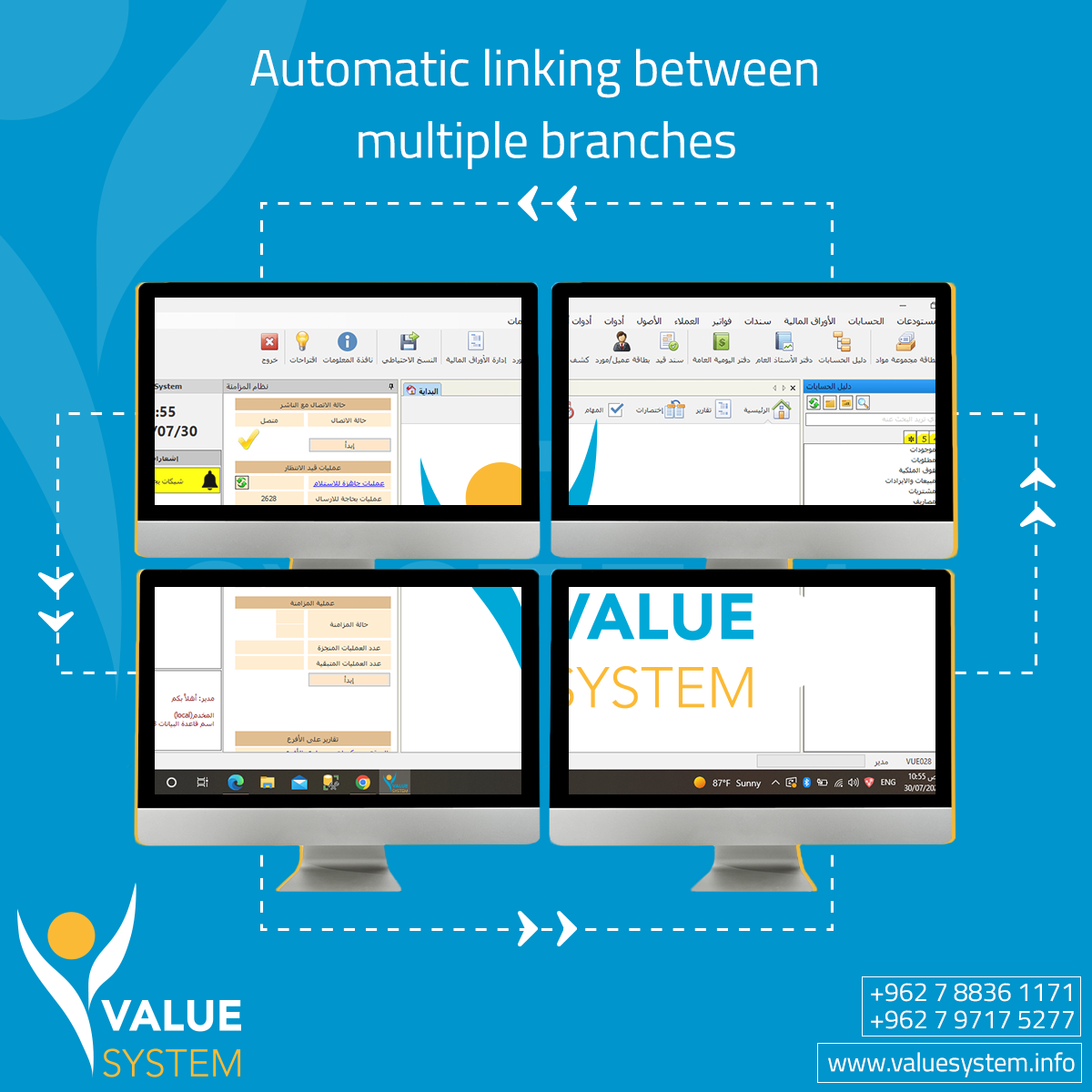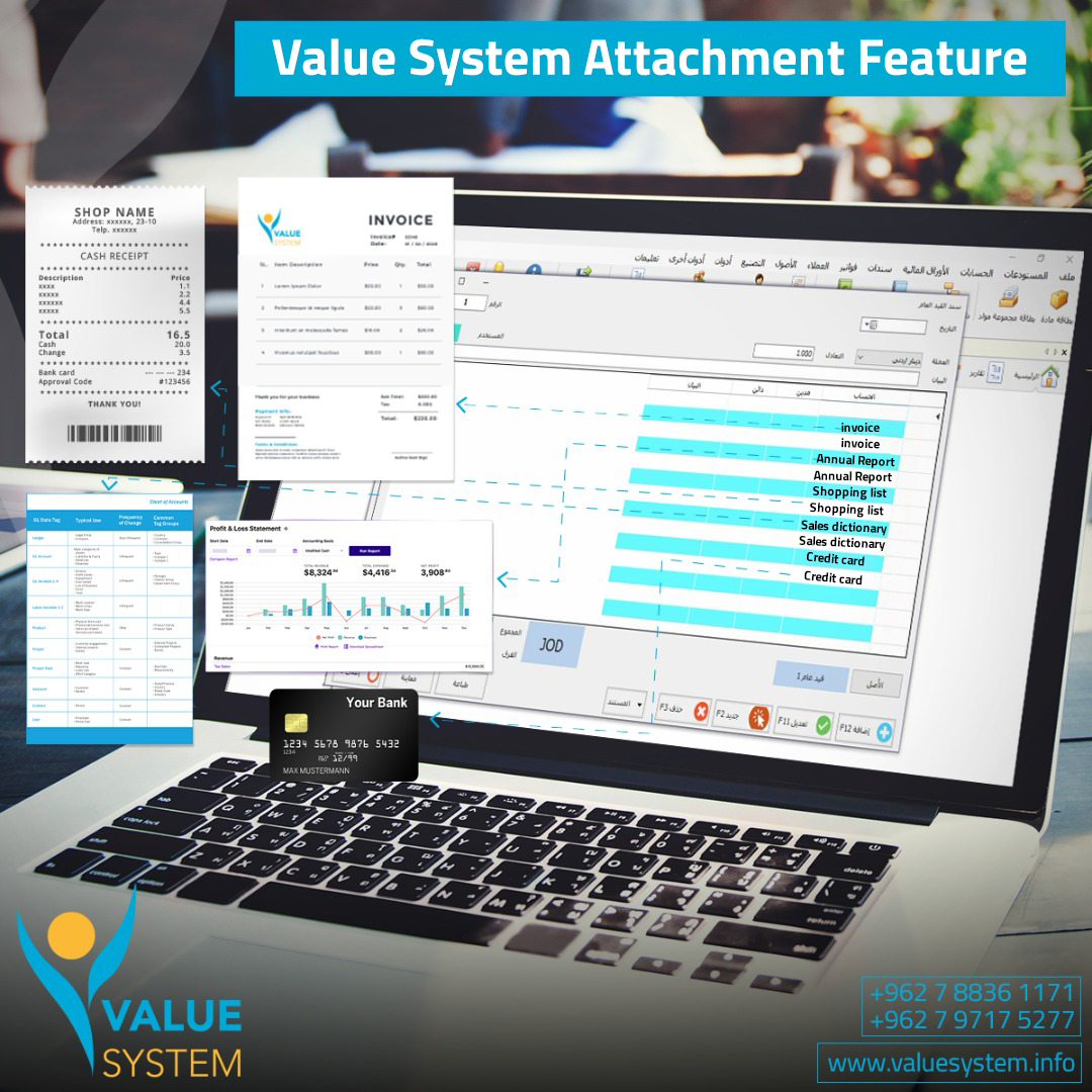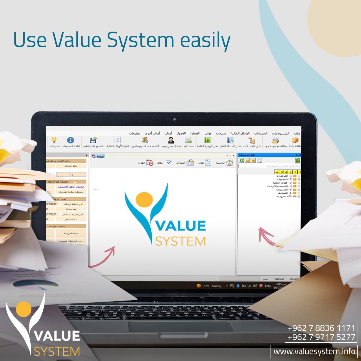 The work site is no longer an obstacle to the availability of all your accounting and financial data on cloud storage, you can access files and documents from anywhere in the world by connecting to the Internet Enjoy more advantages with the Value System