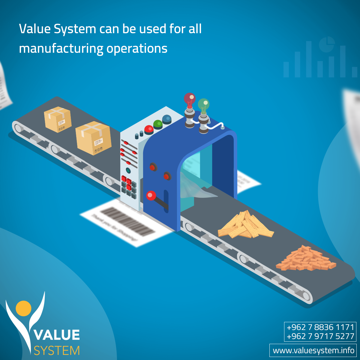 The manufacturing system within the Value program is designed to meet the needs of factories whose production depends on the manufacturing processes of a single product, the product to be manufactured may be a finished product or a semi-manufactured product, as this system is used in many manufacturing processes required to reach certain products by integrating two or more materials To obtain one material, by specifying quantities of raw materials and the amount of material to be manufactured